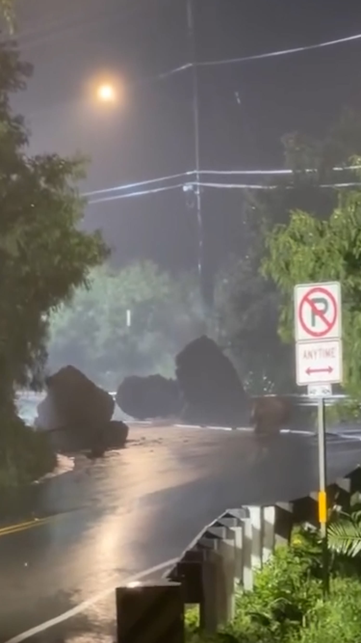 Huge boulders crash onto Hawaiian highway