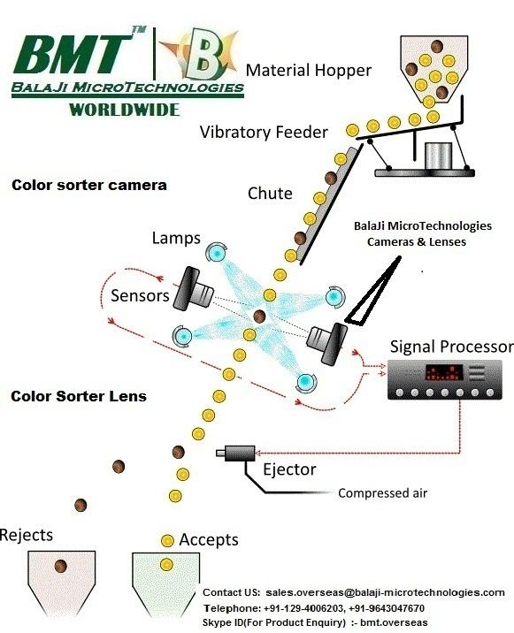 BalaJi MicroTechnologies (BMT) is India's No. 1 Manufacturer & supplier of high speed RGB CCD Line Scan Camera, C-mount Machine Vision lens & F-Mount Machine Vision lenses which are good for use in Bi-Chromatic & Tri Chromatic Colour Sorter Machine. The company design & manufacture complete electronics for Color Sorter Machine.